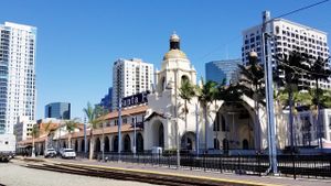 This is the last stop for Pacific Surfliner intercity trains from Los Angeles. This station has a waiting room, ticket office, and Quik Trak machines. Checked baggage service is available. Coaster and Amtrak trains use the 4 outer tracks from the depot building.