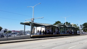 This station features center platforms in the middle of 19th Ave. Pay cash fare or tag Clipper card/mobile device onboard the vehicle.