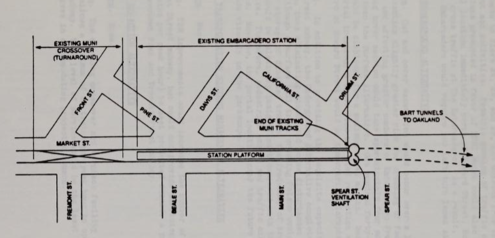 The original Market Street subway for Muni had a stub terminal at Embarcadero Station and a scissors crossover approaching the station. To compensate for the lack of a proper turnback and maintain throughput, cars from different lines were supposed to couple together when entering the subway at West Portal and Duboce Portal, continuing to Downtown as longer 3 and 4 car trains. However, due to surface traffic, the coupling operation proved to be complicated, and frequency was reduced.